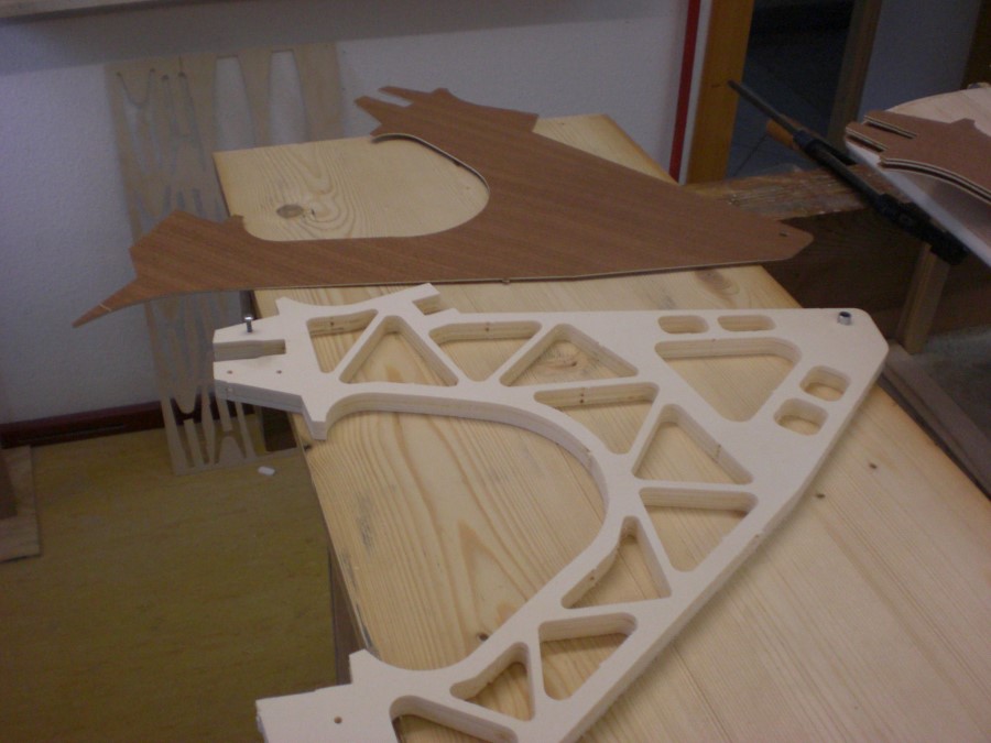 ... wird mit Mahagoni Furnier beplankt (für die Steifigkeit)